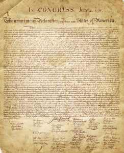 “We hold these truths to be self-evident, that all men are created equal, that they are endowed by their Creator with certain unalienable Rights, that among these are Life, Liberty and the pursuit of Happiness. That to secure these rights, Governments are instituted among Men, deriving their just powers from the consent of the governed.”