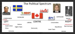 More germane to the point of this article, the scale above provides much insight into politics and political systems. In the “Note” at the top of this article I made mention of the classic political “Right” and “Left” spectrum which we have been hearing about and using our whole lives, many of us without really understanding what the terms imply. Historically the terms “Right” and “Left” in a political context came from their use in the French Revolution in the late 1700s. Those in the French general assembly who supported the King sat together on the assembly’s right side, while those opposed to the monarchy sat on the left. As time went on “Right” came to symbolize a conservative maintaining of the status quo, nationalism and, in its extreme form Fascism [2]; while “Left” came to mean what is today considered to be liberal, socialist or socialist leaning and, in the extreme, Communism. This classic “Left to Right” spectrum would have you believe that “Communism” on the extreme left of the spectrum, and “Fascism” on the extreme right, are diametrically opposed to each other.